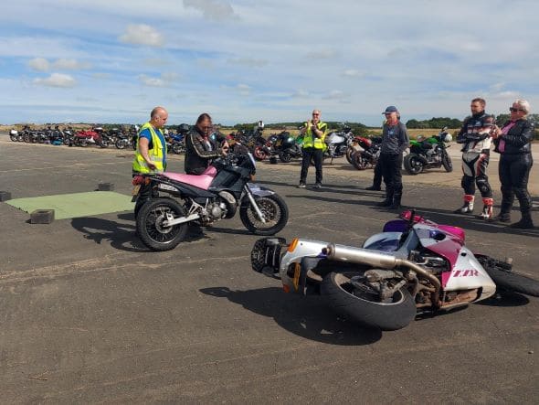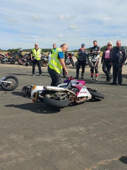 We started the day with ‘How to pick up a dropped motorcycle’ which after a great demo, many attendees had a go at. Although, we hope never to need this skill it is important that we know how – just in case!