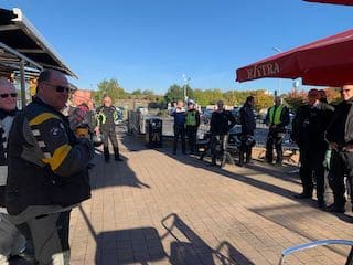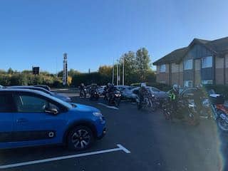 We officially met at 9:15am for the ride briefing, although some of us had been their earlier to grab a coffee and have a chat with other members. The briefing covered the main points to look out for on the ride, and also covered the group riding system we were going to use, in this instance the Second Man Drop-Off. On a social ride, and in every other instance where members take part in PECAM activities, the individual member is responsible for their own safety, the safety of there motorcycle and their legality. When we use the drop-off system the person marking the junction only has two things to think about, their own safety and being able to be seen by the riders following.