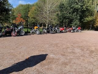 October 9th saw the first of the two ride-outs for the month. The PECAM Group offers two ride outs each month throughout the year for members. These rides are also open to Associates who are very close to being Advanced Test ready and, importantly, have their Observers support to join the ride. These are social rides, and not training rides. They provide a safe group of Advanced Riders for members to enjoy exercising their riding skills. For this ride in the sun we had 17 members and one with a pillion passenger.
