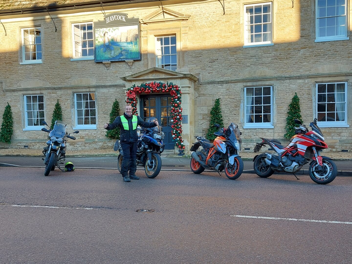 There were some superb roads, with new roads and ones not ridden for a while, taking us through Rutland and Leicestershire. The conditions of the roads were mixed, the temperatures hitting a high of 12 degrees, barmy weather for December, with the low sunshine on wet roads making for an interesting ride in places, a progressive pace was made to the new destination