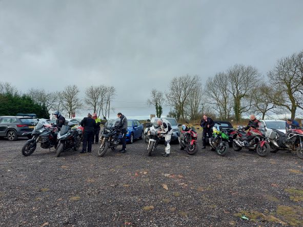 After a briefing by ride leader Brian Wingrove on the route and destination, with so many bikes in attendance, the drop off system would be used for the days ride, two associates had not used the drop off system before, so a reminder of how the system worked was discussed before setting off at 10.30am but not before a cautionary reminder from Brian, regarding the road conditions and that there could be some challenging conditions due to the time of year.