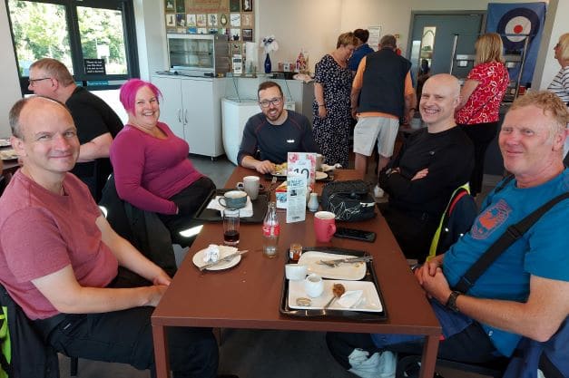 The drop off system was used and despite being such a large group, worked really well, with us all arriving at International Bomber Command on time for Breakfast.
