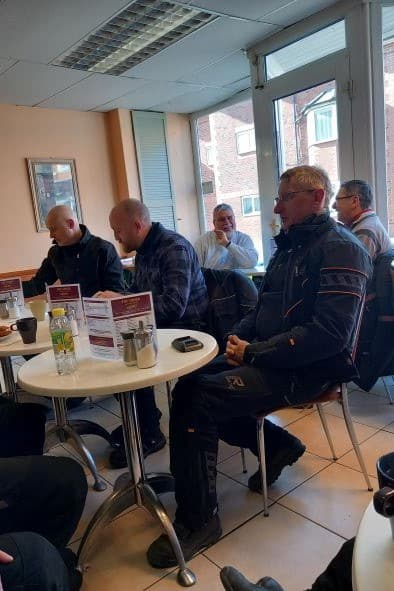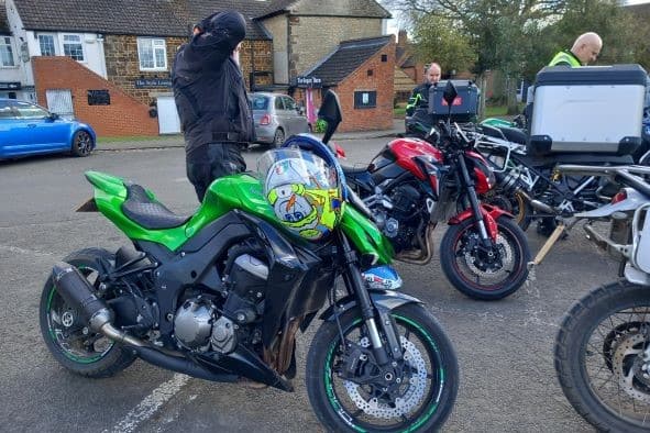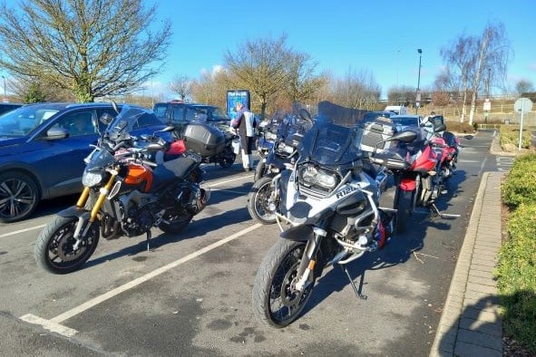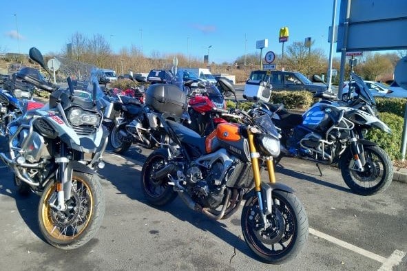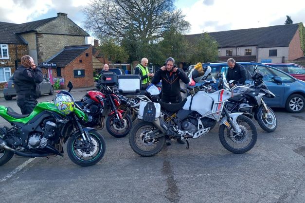 Wow! What a turn out for a chilly Sunday Morning, 19 bikes and one pillion for Martin Jones adventure to a new destination Milligan’s Kitchen in Finedon.
