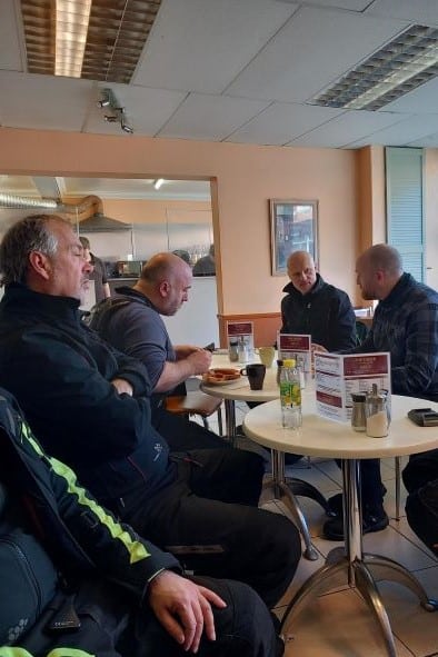 We enjoyed a chilly but sunny ride out through some lovely countryside and villages, with plenty of narrow twisty road, a route of around an hour and ten minutes, reaching the destination café in time for refreshments.