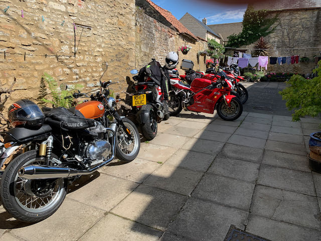There was a great mix of excellent machinery, with 3 Ducatis, a Triumph Tiger, a BMW S1000RR and a cracking new Enfield Interceptor, still being run-in. The Ducatis included a smart Monster, the ever capable Multistrada and fabulous 996. The sun wasn’t exactly shining, but it was dry and the road conditions were excellent as the group made its way through the very nice Biker friendly twisty roads in a loop south and then back north, across the A605 and then on to the A6116 for a short stint to the picturesque village of Brigstock. The group of 6 advanced riders all kept up a very good pace through the wide variety of roads they encountered.