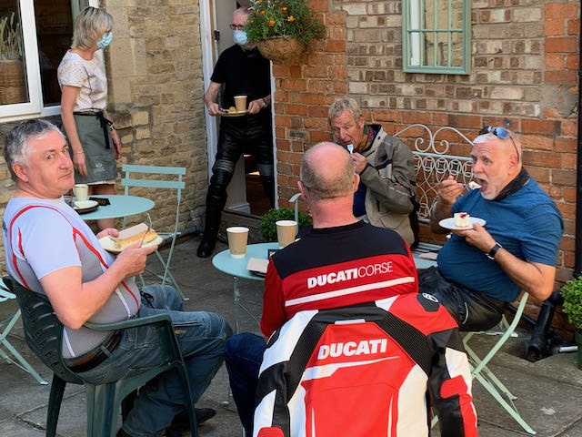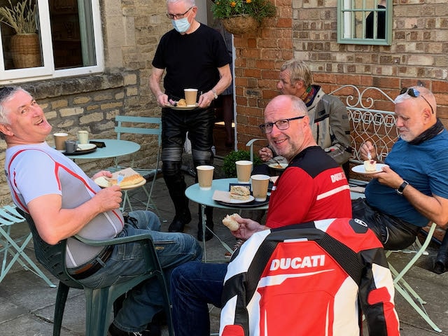 The Bake and Brew had reserved us tables in the Courtyard and with special permission allowed us to park the bikes there as well.  The tea, coffee and various savoury and sweet snacks were very high quality, and the staff made us feel very welcome.