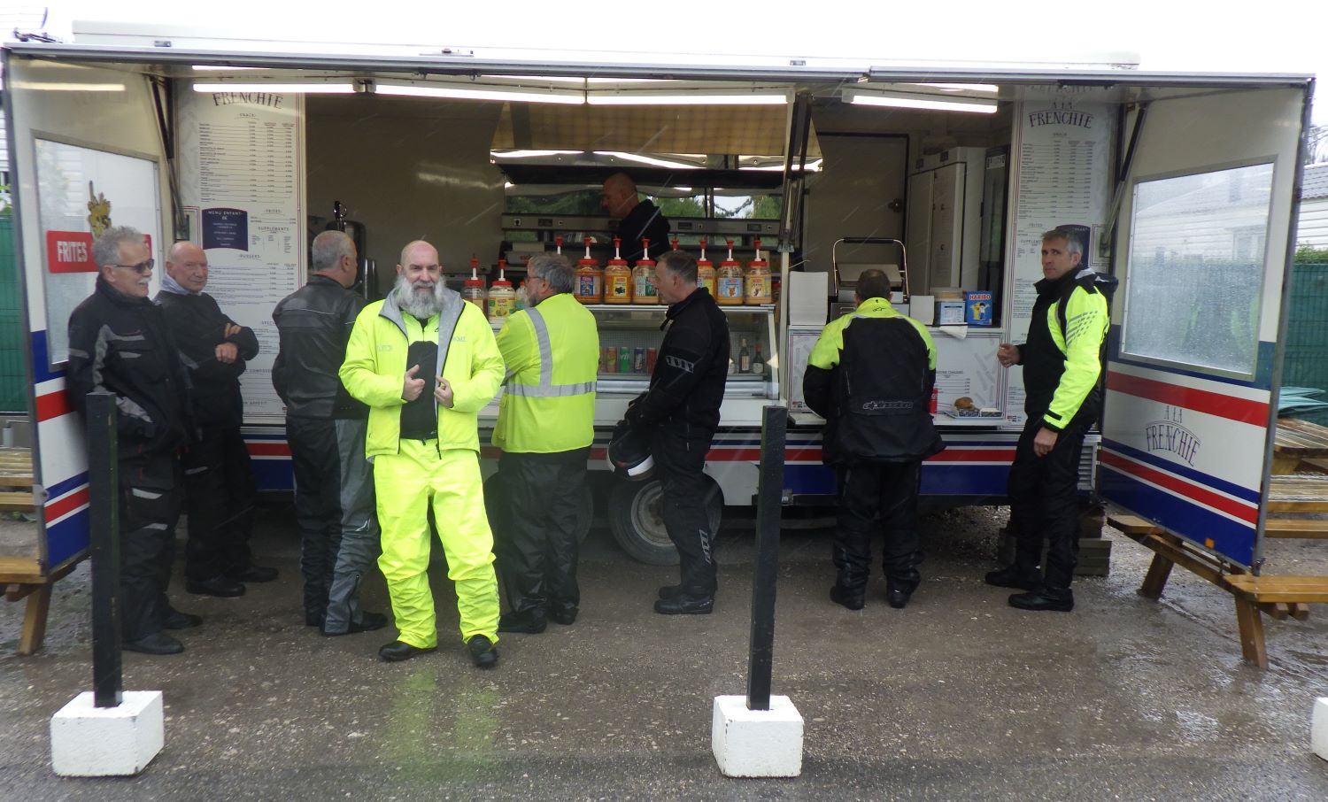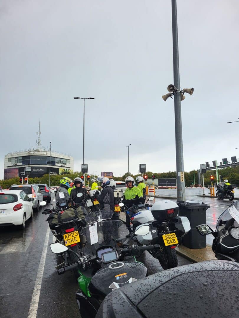 Seventeen PECAM Members and one pillion, met at the Eurotunnel to start the process of checking in for our train at 10.20am to Calais, this was made all the more tedious as it was raining very hard, again!