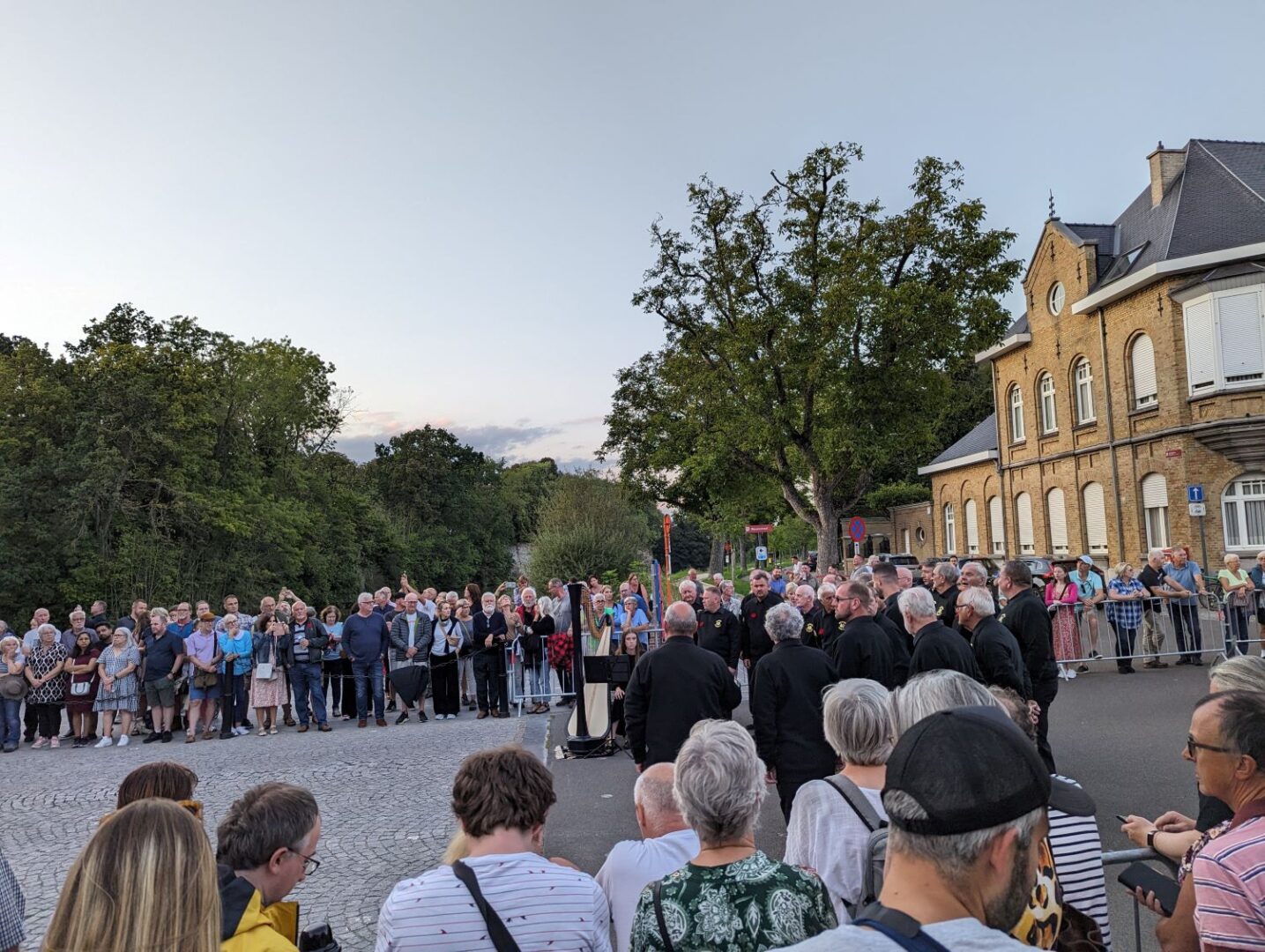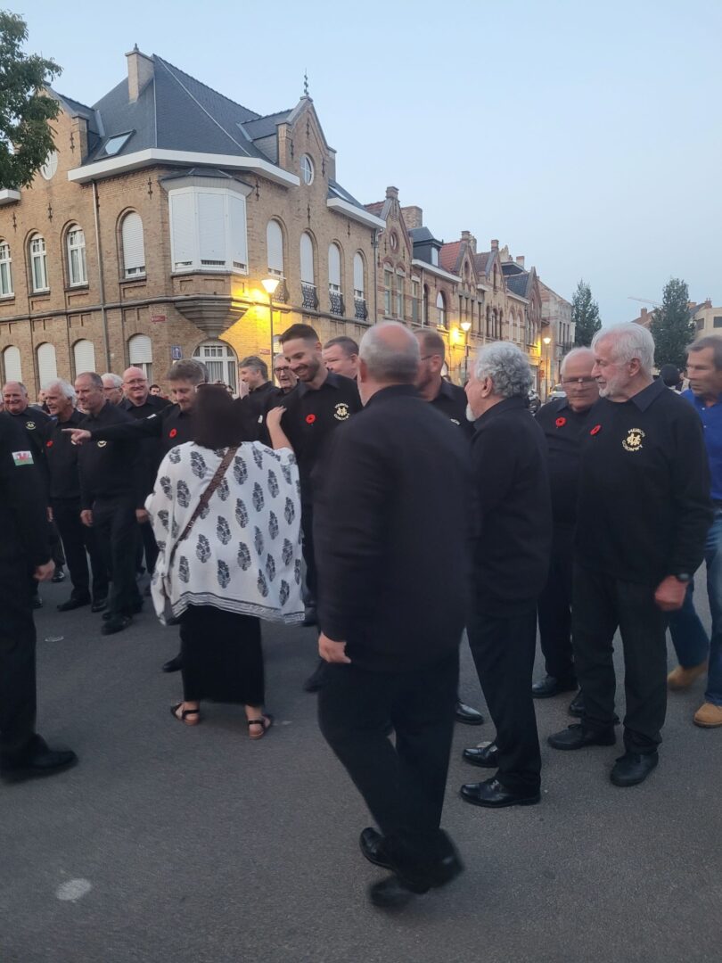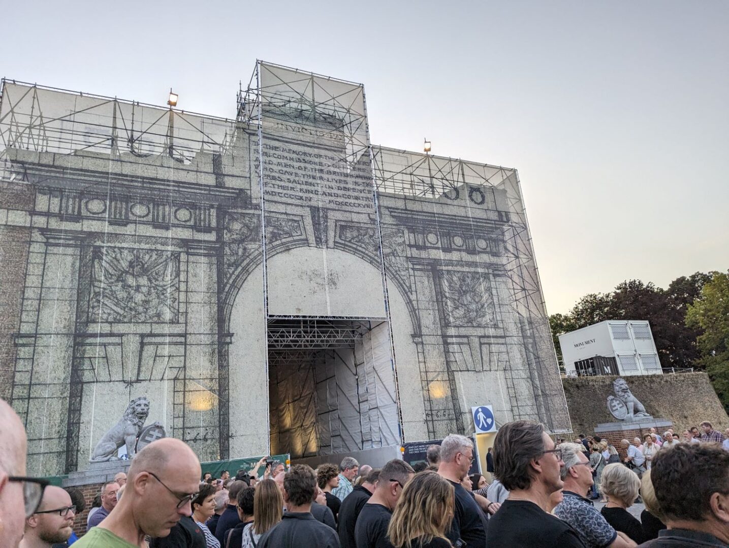 We then attended the Last Post ceremony at the Menin Gate. Although the structure is clad in protective material whilst it undergoes restoration, the ceremony takes place slightly to the east, on the canal bridge. On this evening a Welsh, male voice choir, “Meibion Goronwy” were part of the ceremony.
