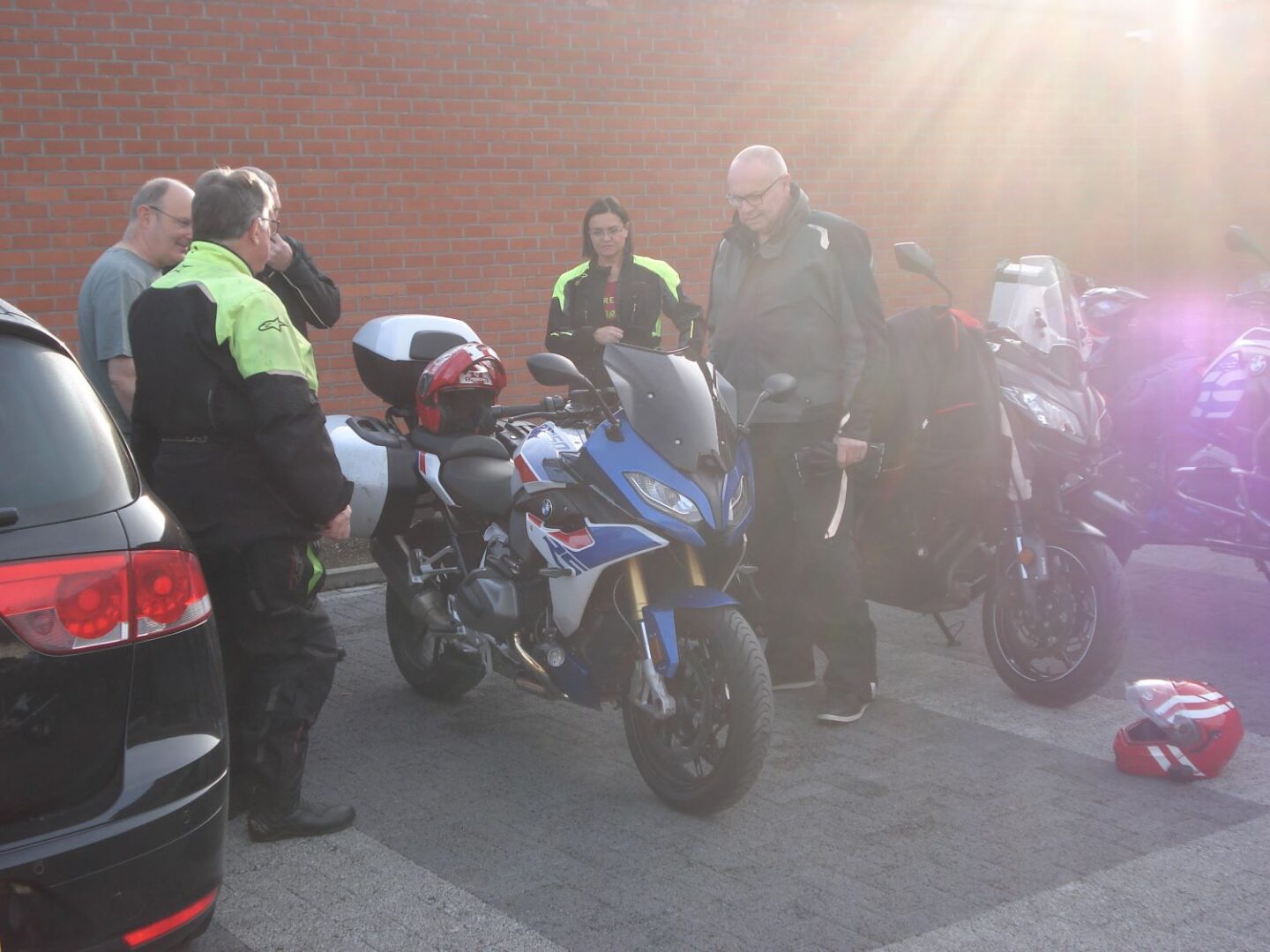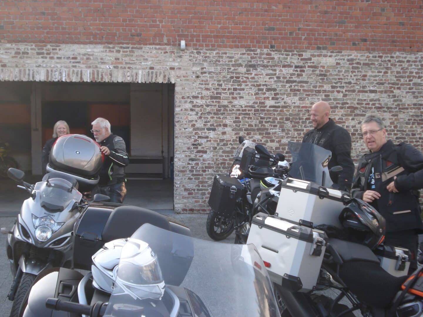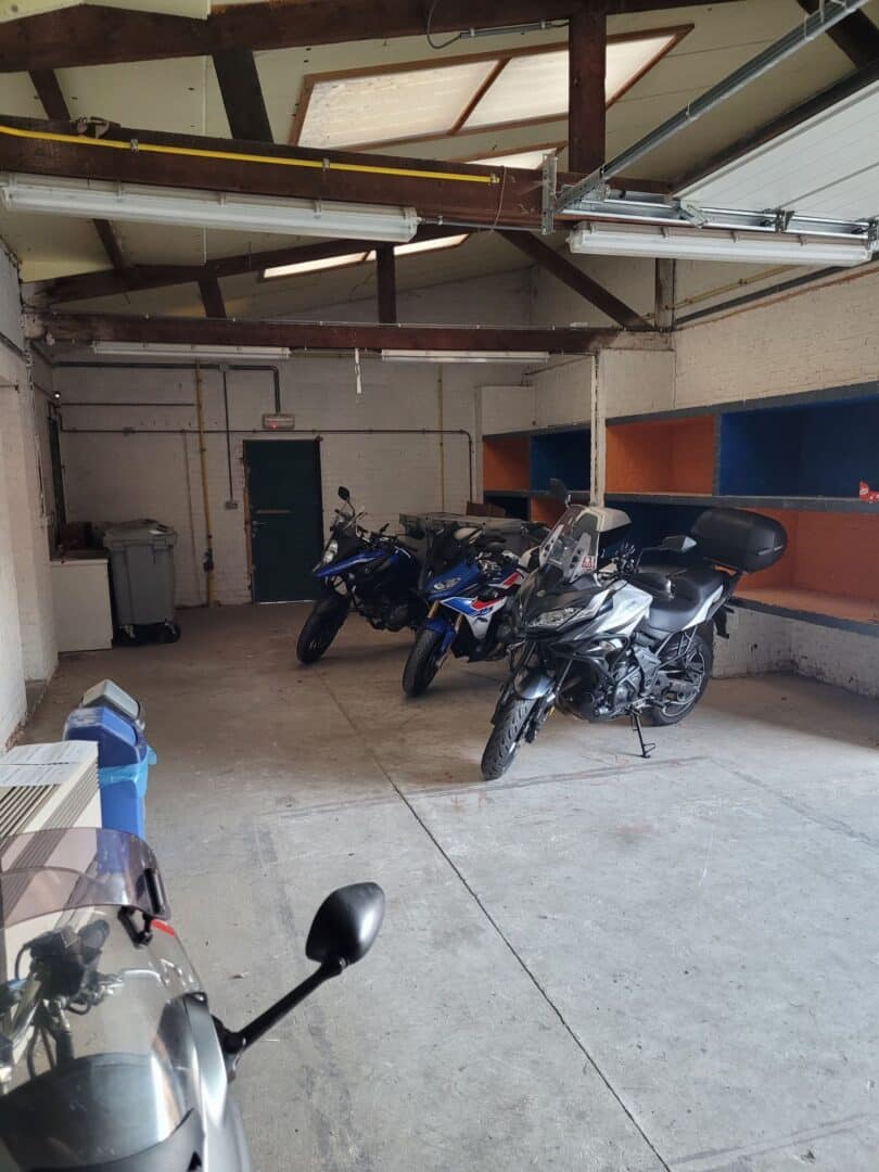 However, travelling south on the M11, near Addenbrookes Hospital, Garry Cutresses’ top box decided to part company from his bike! How it had remained in situ for that long is a mystery. Fortunately, a close following ambulance crew saw what had happened, put their blue lights on, and straddling both lanes, brought the motorway to a stop, allowing Martin Mooney to recover said item which was surprisingly intact despite its solo adventure. Martin Munday eventually attracted Garry’s attention to what had happened, (he was oblivious to his loss), and top box and owner were reunited. Additional security of the offending box was supplied by Andy G who had a cargo net to hand!