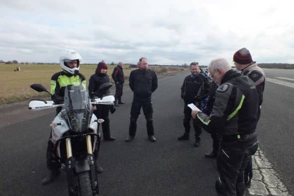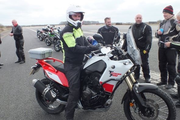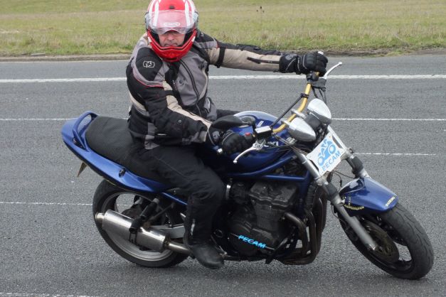 Seven riders took up the offer of the free training on a chilly but bright morning, the Members spread out over the two exercises on offer to start, with some changing from slow speed to gymkhana during the session.