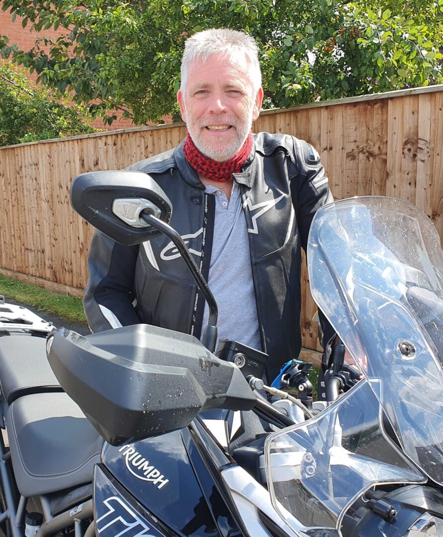 Sean passed his test after 8 one-to-one observed rides with his dedicated Observer, and a mid-programme check ride with one of our National Observers. Sean started riding 40 years ago at the tender age of 16. Even with all of that experience the Tiger 800 rider says that he has found he is now riding ‘quicker, without speeding’ and seeing much more as he is riding, which enables him to plan the most effective and efficient route through the hazards he finds on his route. Sean rides out with his wife, and she has said that he is a much better rider following his training.
