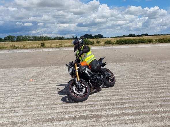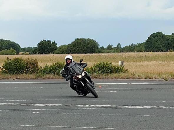 There are 5 slow speed exercises permanently marked out, taking the rider from a straight forward slow ride at walking pace in a straight line through a slalom course, to a tight figure of eight, and a road width ‘U’ turn practice to more developed exercises. In addition there is an established set of more advanced exercises, leading to the practice of motorcycle gymkhana. Gymkhana is far from slow, but does engender exceptional skill development in handling your motorcycle, which will stand you in very good stead in a number of real world situations. In addition to the standard exercises, expertise is on hand to help you develop and practice any bike handling skills you would like to practice in a safe, traffic free, environment.